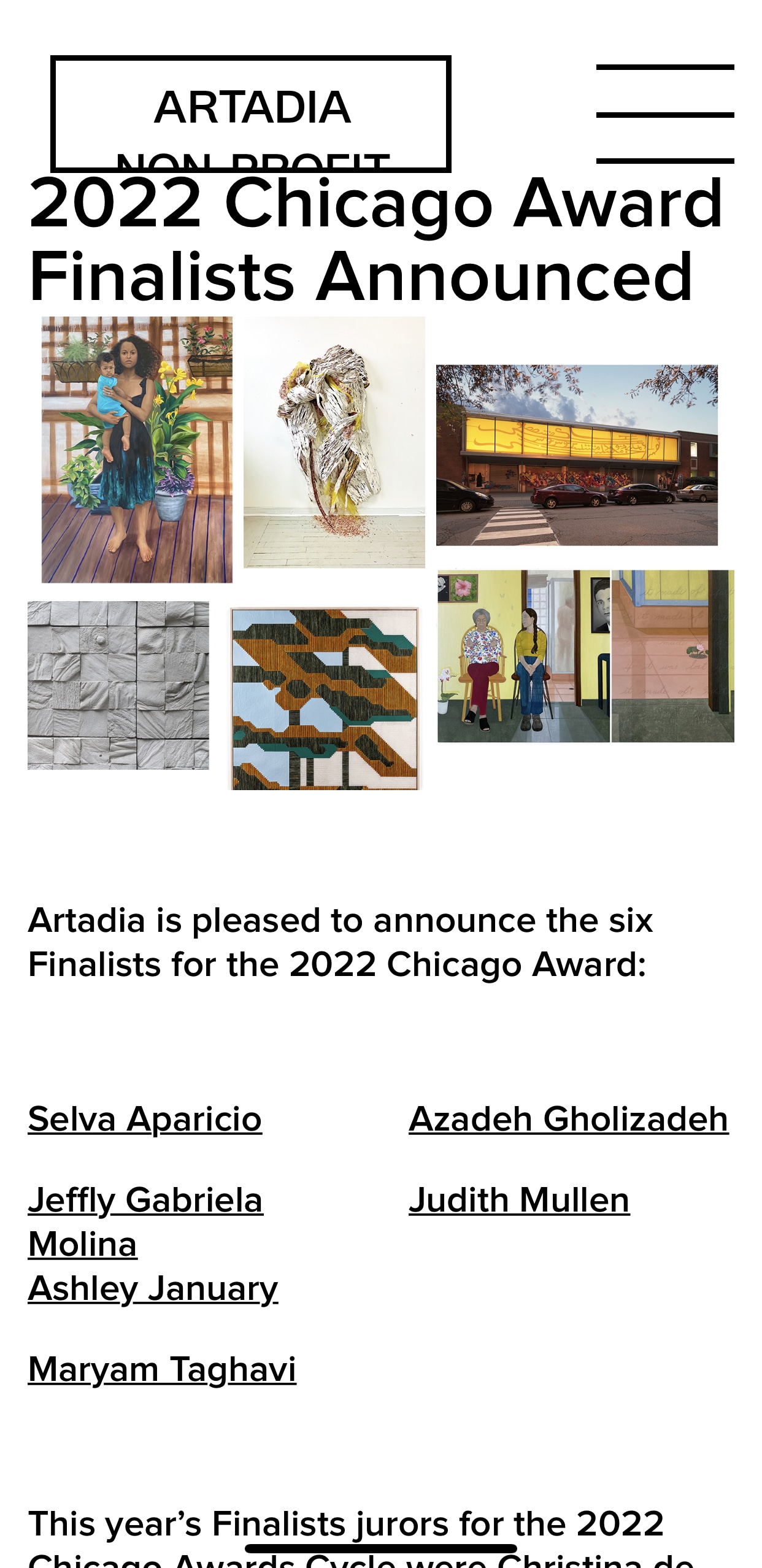 I was selected as one of the six finalists for the 2022 Chicago Artadia Awards.