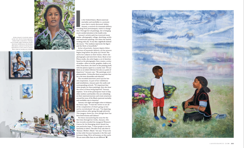 In the article, 11 important artists making contemporary art about motherhood, Ruth Millington, highlights a spectrum of artists working in different media that also center motherhood in their works. She highlights my paintings that focus on bringing awareness to the Black maternal health crisis.